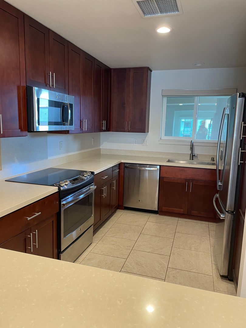 Central air conditioning. Stainless steel appliances with solid surface Silestone quartz counter tops in kitchen.