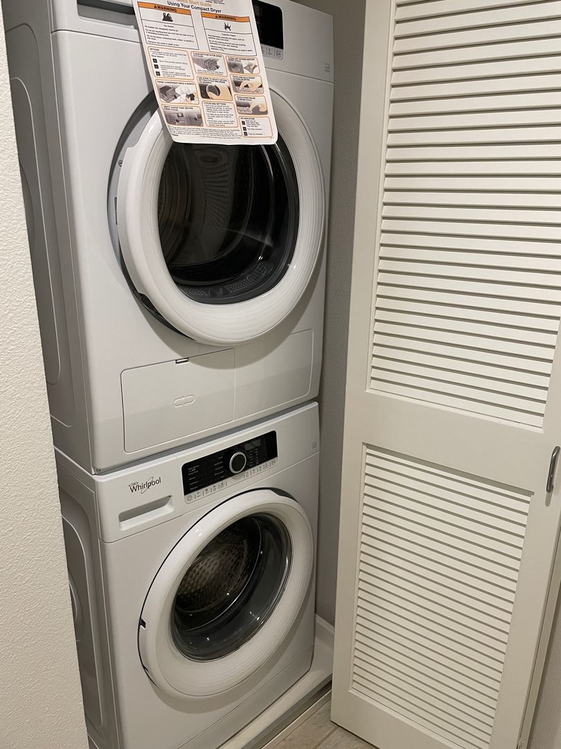 Appliances include; range/oven, microwave, dishwasher, French Door stainless steel refrigerator and stack washer/dryer.